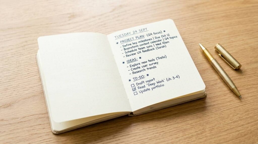 A6ノートの使い方に迷う方へ。1ページ1情報の考え方や時系列ログ タグ活用のコツをもとに 手軽に続けやすい記録術をわかりやすく紹介します。アイデア整理や習慣化に役立つ活用法を今すぐチェックしてください。 -