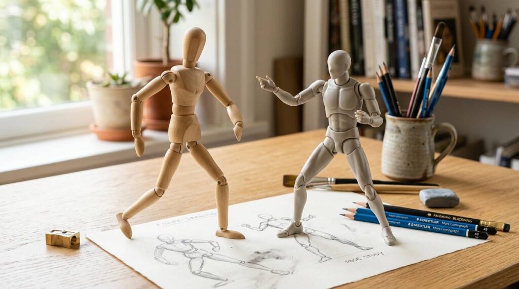 100均とデッサン人形の違いが気になる方へ。可動域や素材 耐久性 等身バランス 土台の安定性からおすすめ6選までわかりやすく紹介します。描きやすいポーズ保持や上達につながる活用法も知りたい方はぜひチェックしてください。 -