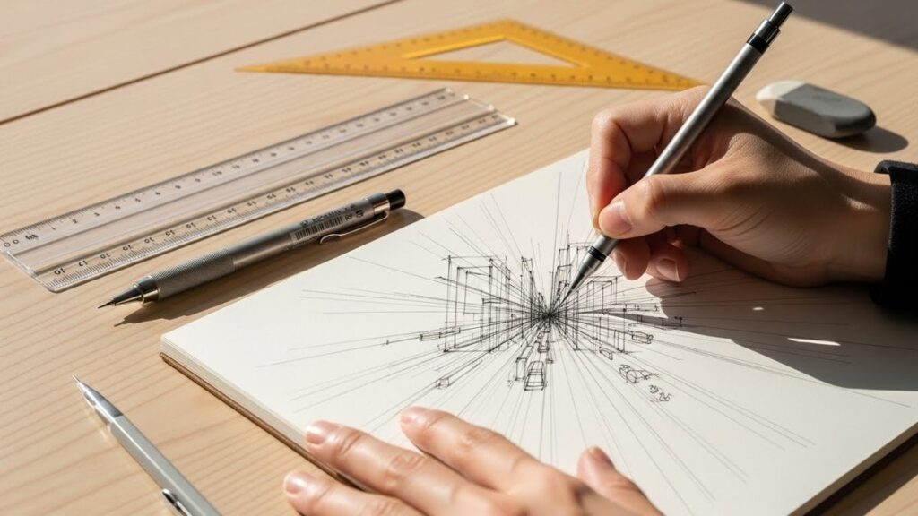中学生でも一点透視図法を使えば風景に奥行きをはっきり出せます。地平線と消え点の決め方や建物がズレない描き方のポイントを分かりやすく紹介します。上達に役立つおすすめの定規や方眼ノートなどの道具もチェックしましょう。