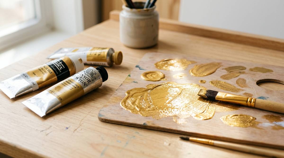 自分が持っている他のアクリル絵の具と同じブランドで揃えるのが、最も安全な方法です。ブランドを揃えることで、乾燥速度や化学的な相性が一致し、トラブルなく美しいグラデーションや混色を楽しむことができます。金色単体での輝きはもちろんですが、一歩進んで「他の色と組み合わせた時にどう化けるか」を考えることも、専門家顔負けの選び方といえます。