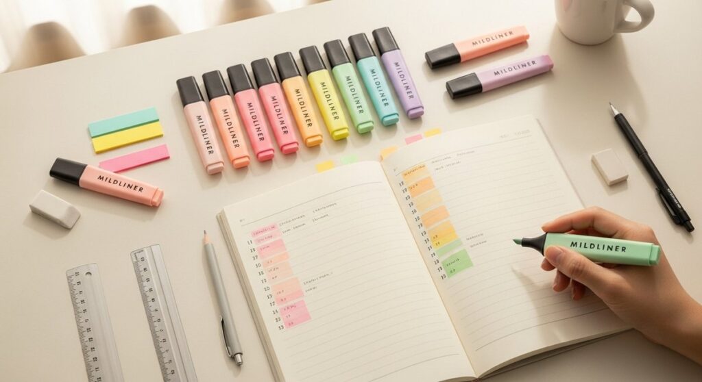 マイルドライナーの色の組み合わせで記憶力と視認性を高める方法を解説します。初心者向けのおすすめ3色と教科別の使い分け例で今日からすぐ使えます。短時間で効果を出すコツや色を増やしすぎない理由までわかりやすく紹介します。 -