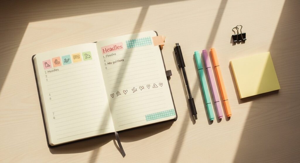 短時間でおしゃれに仕上げる可愛いノートの書き方を分かりやすく紹介します。最低限揃える文房具や色使いのコツ、見出しや簡単イラストで読みやすくする方法を解説します。勉強や日記、仕事用まで用途別のアレンジ例と続けやすいルール作りも掲載しています。 -