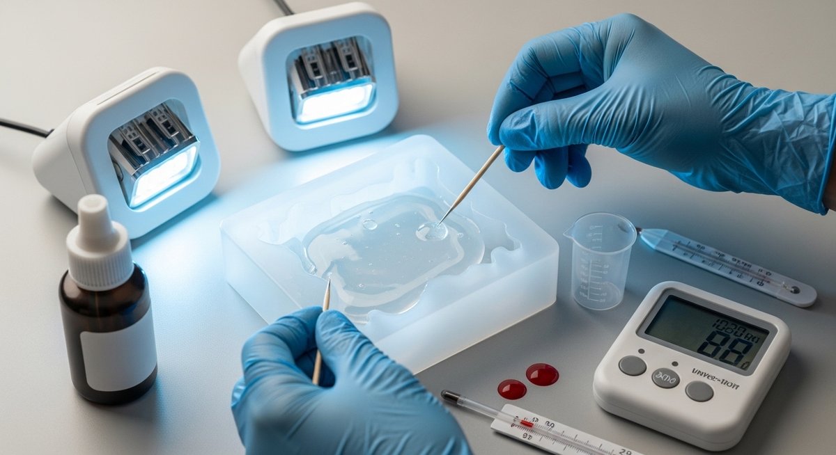 しかし、この反応は非常にデリケートです。例えば、光の強さが足りなかったり、反応を邪魔する物質が混ざり込んだりすると、分子同士の結合が不十分になります。これが、触ったときに柔らかかったり、形が崩れたりする未硬化の正体です。まずは、魔法が解けるように固まるはずのレジンが、なぜ「途中で力尽きてしまうのか」を理解することが解決への第一歩となります。