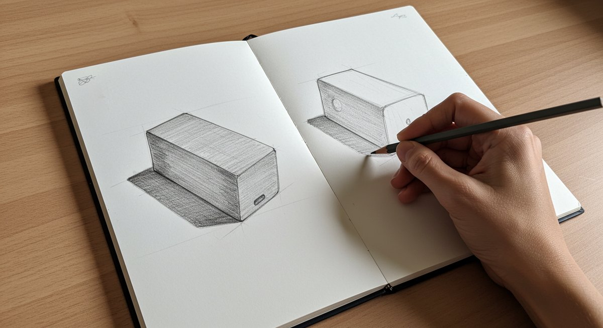 これらの形は影の付き方が分かりやすく、光源の位置を変えることで影の変化も観察しやすいのがメリットです。最初は白い紙の上に実際に物を置いて、自然光や卓上ライトでできる影を観察し、そのまま模写してみるのも効果的です。繰り返し描くことで、影の位置や濃淡の感覚が身についてきます。