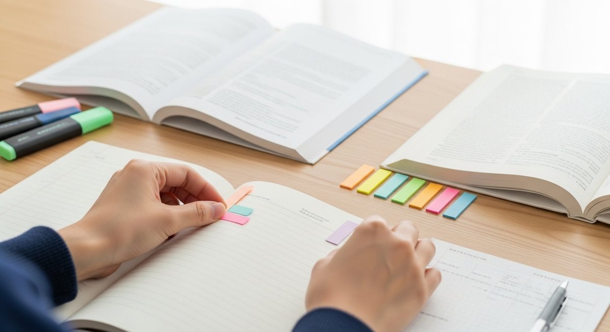 細い付箋は少ない手間で学習の見直しをしやすくする便利なツールです。色や位置、サイズをルール化してシンプルに使うことで情報の検索時間を短縮できます。科目ごとに使い分け、復習の頻度を決めると効果が高まります。