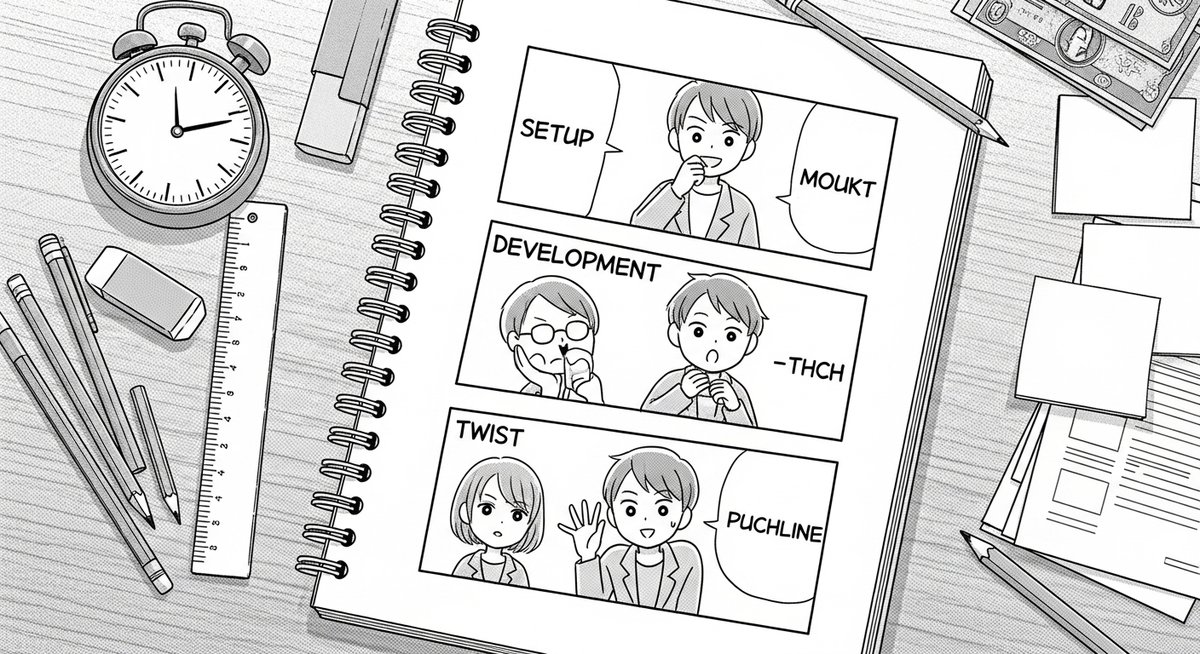 重要なのは、フリが丁寧であればあるほど、オチの効果が倍増するという点です。急いでオチをつけようとしてフリを疎かにすると、読者は何が起きているのか理解できず、笑いのタイミングを逃してしまいます。フリによってしっかりと土台を築き、最高のタイミングでオチを投下する。この精緻な設計こそが、面白いネタの正体なのです。