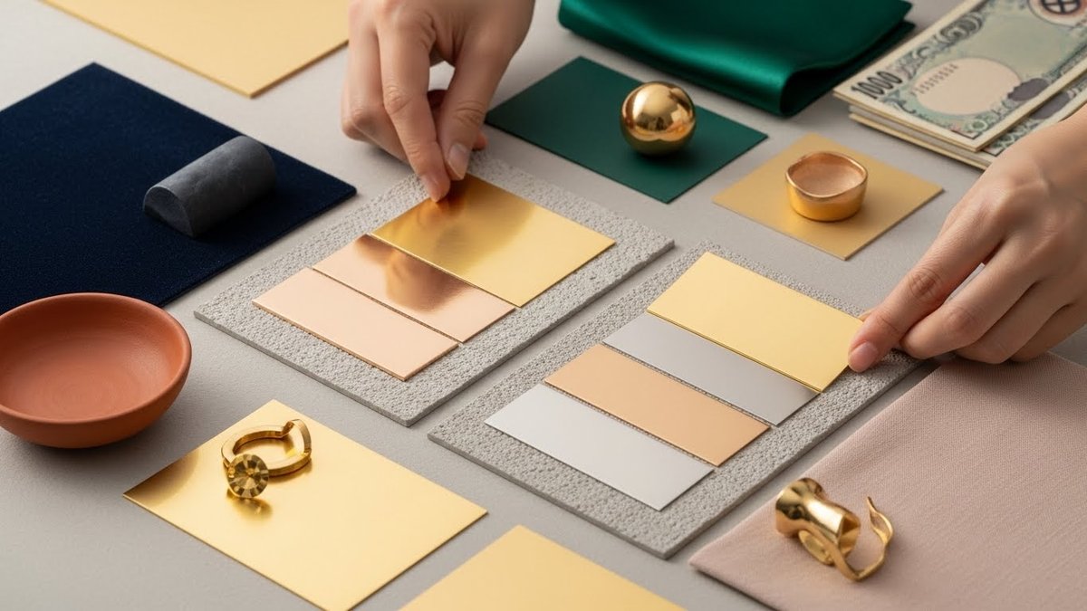 光の入り方も考慮してください。自然光が当たる場所に金を置くと表情が豊かになります。マットな金は落ち着いた空間に、光沢のある金は華やかな空間に向いています。