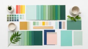パレットに加える際はアクセントカラーも考えます。濃いネイビーや深緑は金を引き立て、淡いベージュやグレーは上品な背景になります。色見本を複数用意して、画面上と印刷での見え方を比較してください。