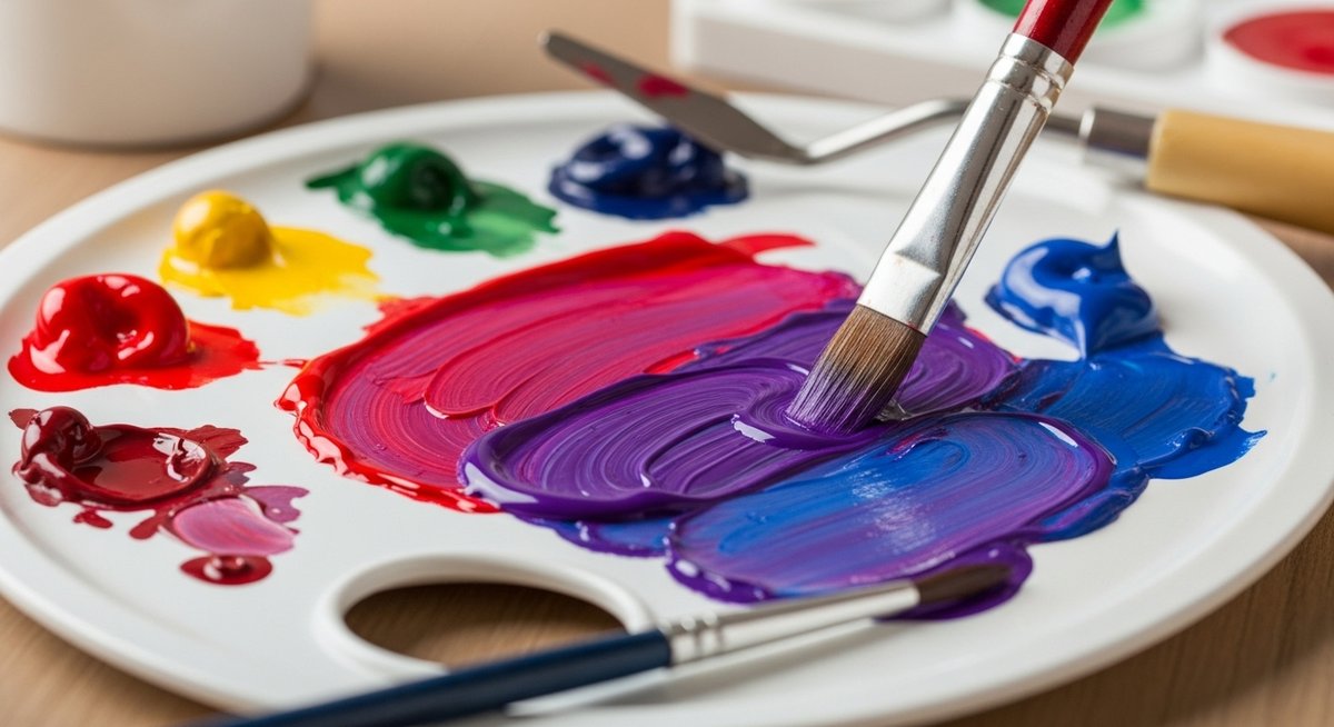 鮮明な紫を作るためには、できるだけ黄味を含まない純粋な赤(マゼンタ寄りの赤)と、純粋な青(シアン寄りの青)を選ぶことが鉄則です。色を選ぶ際には、チューブの裏面にある顔料成分を確認したり、実際に少し混ぜてみて色の変化をテストしたりする習慣をつけましょう。