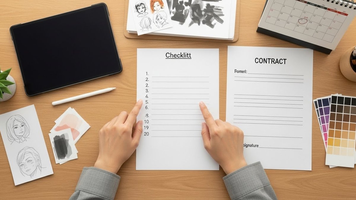 細かい修正の定義を共有すると認識のズレが減ります。色味や構図、キャラクターデザインの差し戻しについて、どの程度までが無料かを明示しておきます。超過分の単価や見積もり方法も契約に入れておくと安心です。