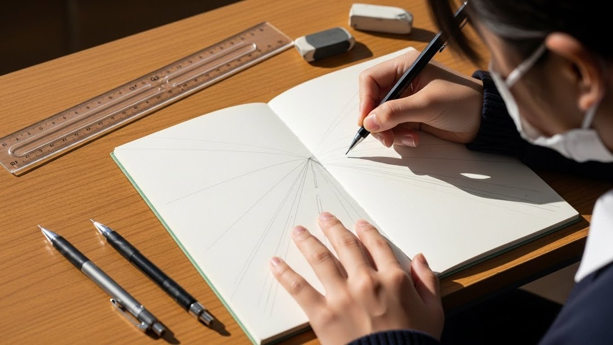 一点透視図法をマスターするには、使いやすい道具をそろえるのも大切です。定規や鉛筆など、学校の道具に少し足すだけで、線の正確さと描く楽しさが変わります。中学生の皆さんが始めやすい定番をまとめます。