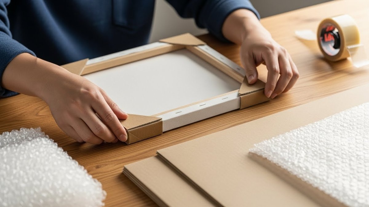 絵画梱包の基本は、作品を単に箱に入れるのではなく、衝撃が直接伝わらない「層」を作ることです。特に四隅の角を強化し、その上で丈夫な外箱を用意する「角保護+外箱」の組み合わせは、運送時のトラブルを大幅に減らしてくれます。この二段階の備えによって、万が一箱の角が潰れても中身の作品までダメージが届かないようになり、受け取り手にも丁寧な印象を与えることができます。