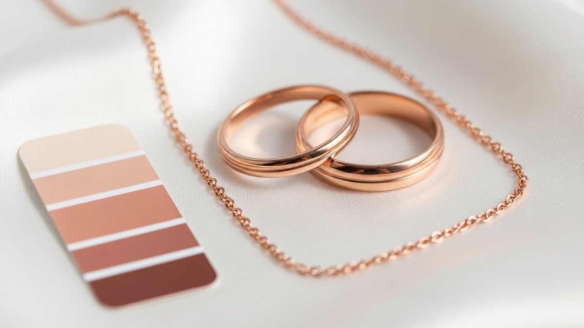 ジュエリーでは金属らしさと肌馴染みが重要です。落ち着いた赤みと深みを持つ色が向いています。