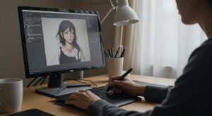 ハイブリッド制作とは、アナログとデジタルの良いところを組み合わせる方法です。たとえば、下書きは紙に描き、線画や着彩はデジタルで仕上げると、独特の風合いと効率を両立できます。