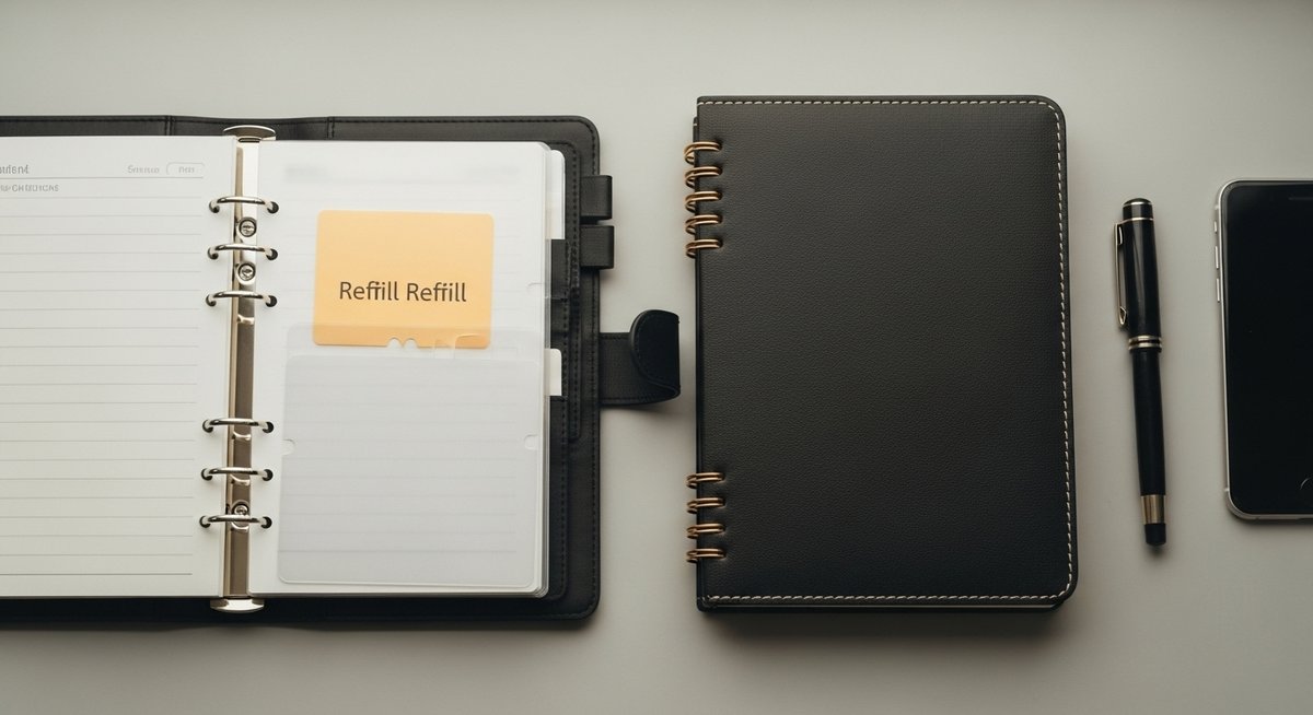 革カバーの場合は専用クリームで手入れすると風合いが保てます。リフィルは予備を持っておくと急な必要時に慌てずに済むので、ストックを少し用意しておくのがおすすめです。