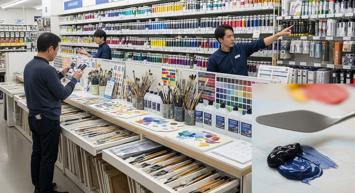 油絵の世界は奥が深く、初心者にとっては「何から買えばいいのか」という不安がつきまといます。そんな時に心強いのが、画材店に常駐している専門知識を持ったスタッフの存在です。