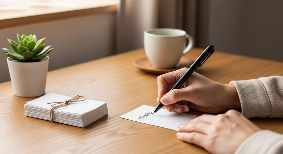 まずは小さな願いを一つだけ選び、短い文章で紙に書いてみてください。具体的な行動や期限を一緒に書くと効果が出やすいです。例えば「1か月で週3回、30分の散歩を続ける」など、明確にします。